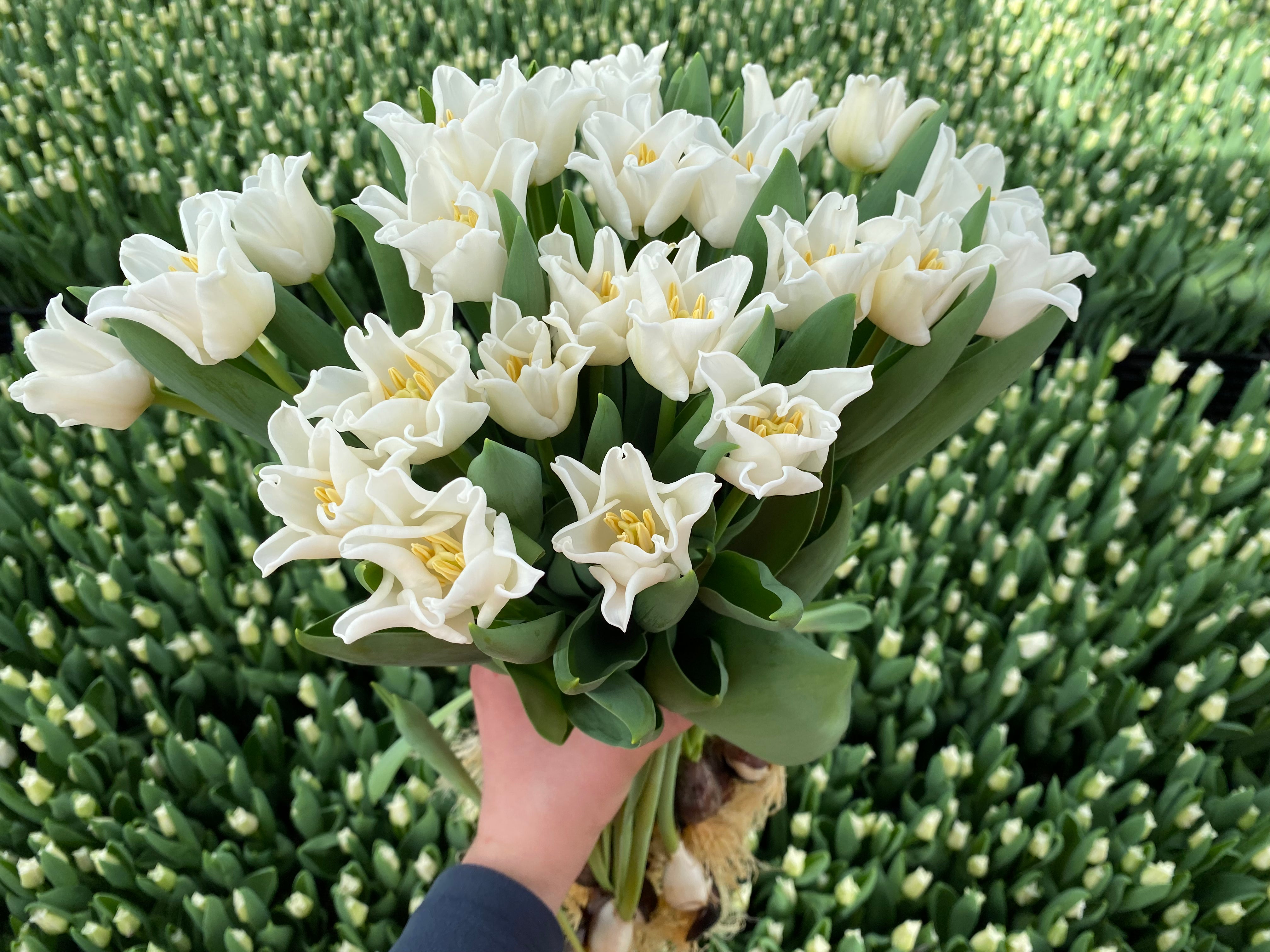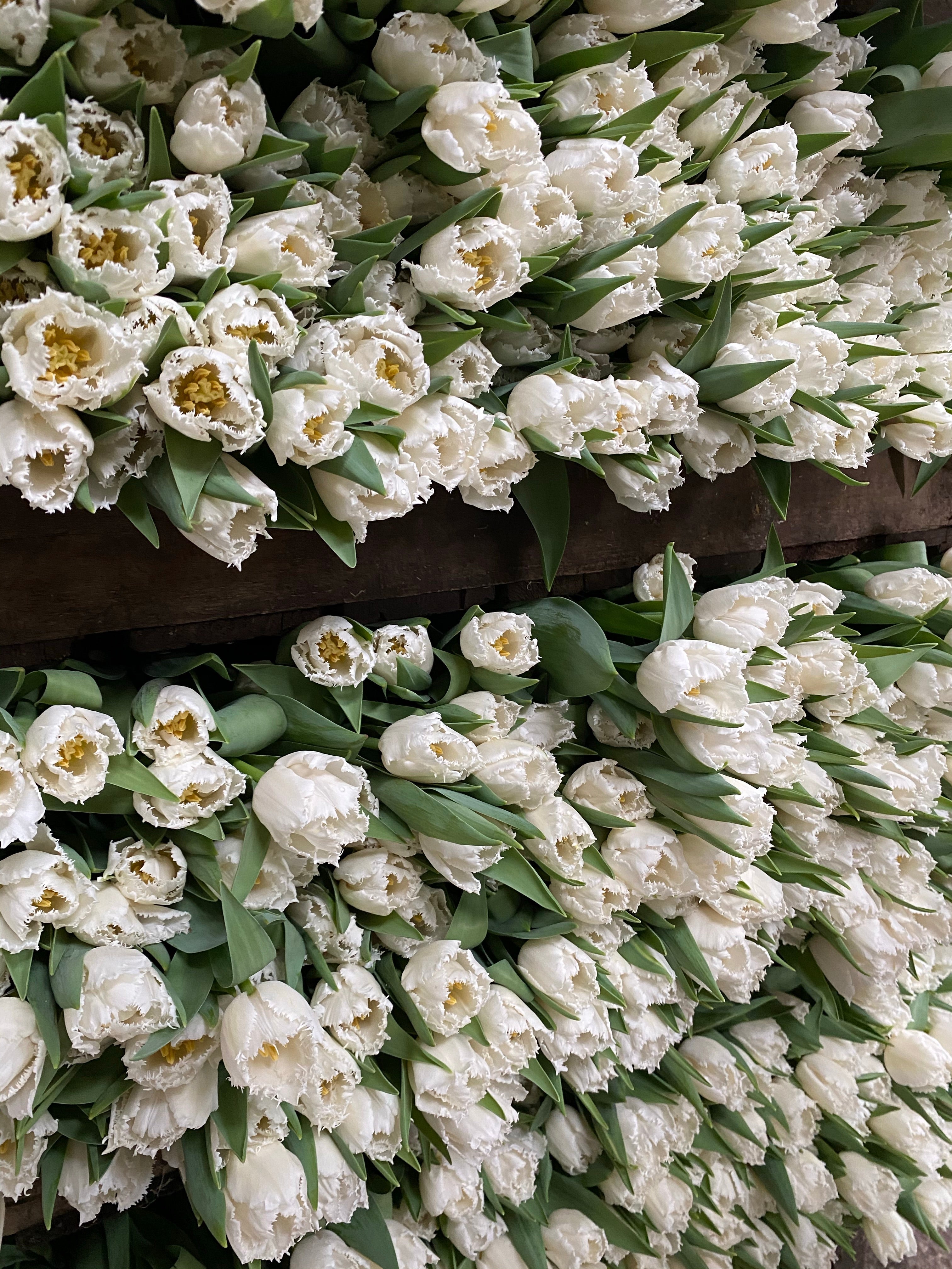 We have all kinds of white tulips available from Christmas to May, these come in doubles, parrots, fringes, crowns and the normal single varieties.